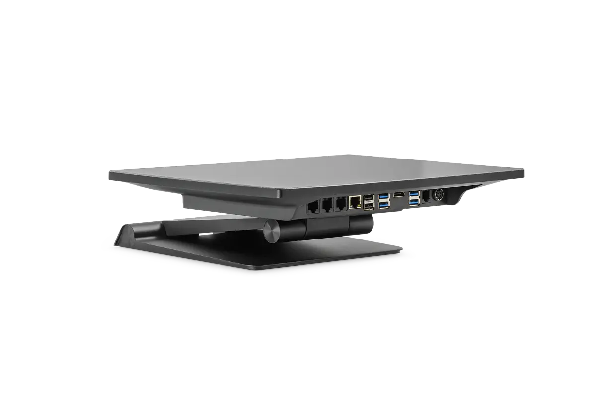 Рабочий процесс с моноблоком комфортен благодаря его бесшумной работе, что важно для кассиров и официантов. Эргономичная подставка позволяет наклонять и поворачивать экран для удобства работы, а при необходимости устройство можно установить на стену.
